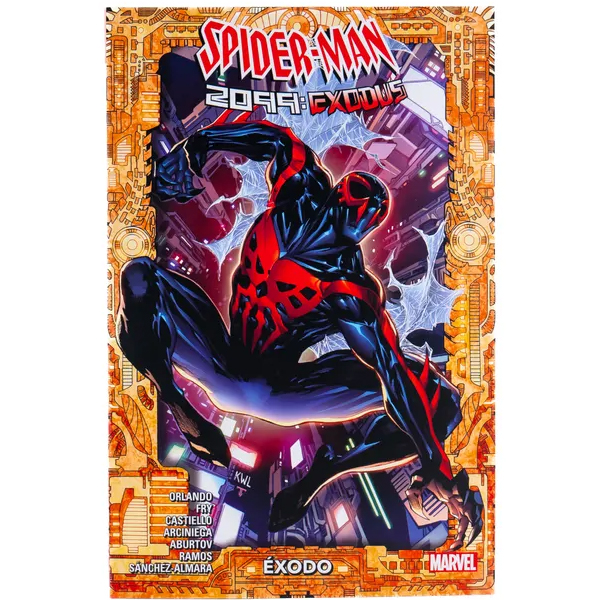 ¡Un nuevo y valiente mañana comienza para el mundo de 2099! Después de luchar en batallas a lo largo del flujo del tiempo, Miguel O’Hara, el Spider-Man del año 2099, por fin está de regreso en casa, defendiendo su presente… y nuestro futuro. Pero lo único constante en la vida de Nueva York es el cambio. Así que cuando un cataclismo crea un nuevo Jardín del Edén en los Baldíos Americanos, Spider-Man sabe exactamente cuál será la próxima atrocidad. 13! Y mientras la Cabal se aprovecha de los marginados de la sociedad, Loki, el último sobreviviente de Ragnarok, trama resucitar Asgard. ¡Con la participación de los X-Men, Moon Knight, Black Widow y los Nuevos Vengadores del futuro!